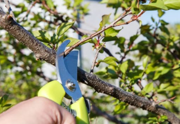 Disinfect tools after pruning to maintain orchard hygiene.