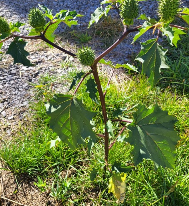 | Spiky seed pods | Round thorn-covered capsules | After flowering | Contain toxic seeds |