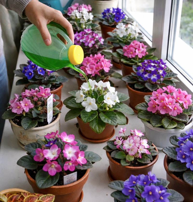 African violets bloom better when slightly root-bound. Large pots often delay flowering because the plant focuses on root growth instead of blooms.
